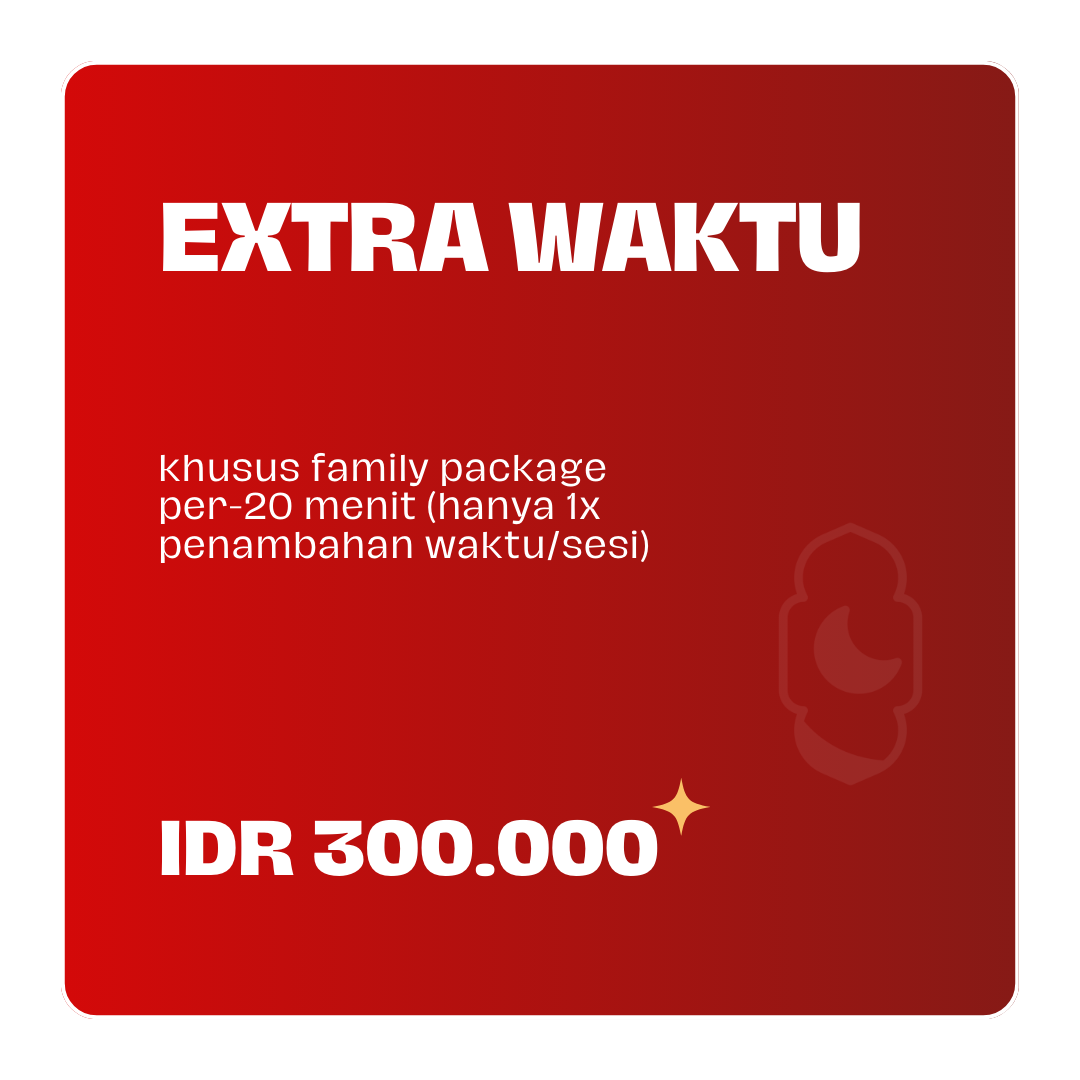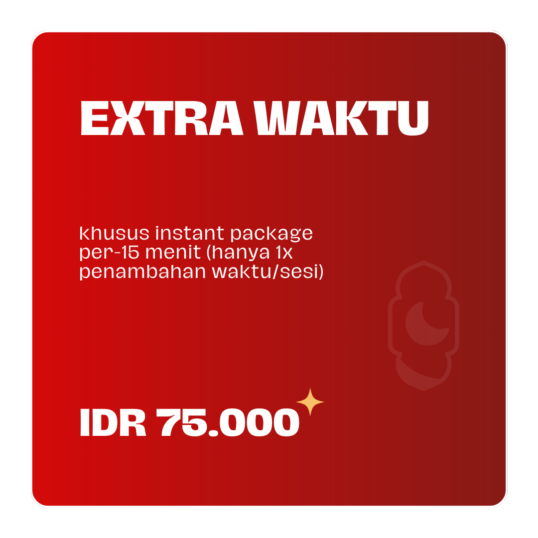 Terlambat : Jika terlambat, jadwal akan dimundurkan sesuai antrian booking pada hari tersebut. Waktu tunggu maksimal jam operasional harian studio sampai 16.00 WIB (tidak bisa pindah hari). untuk 1 minggu menjelang raya dan hari pertama-kedua raya sampai 20.00 WIB.